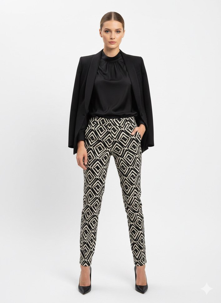 Desenli Siyah Kadın Pantolon