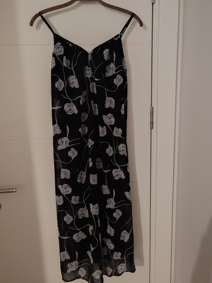 Siyah renkli, straplez ve kolsuz tasarıma sahip, dökümlü ve desenli uzun tulum. Yumuşak sentetik kumaştan üretilmiş, bohem stil sunar. Günlük kullanım için uygundur.