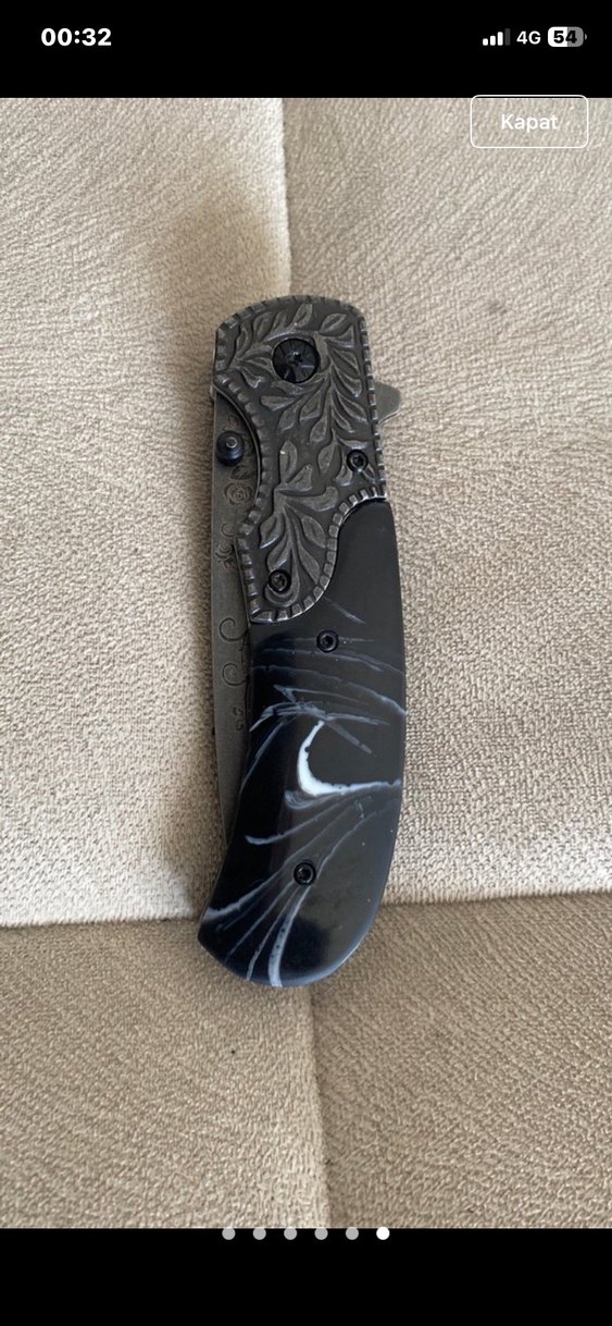 Siyah sapı beyaz damarlı ve desenli koyu metal kısmı olan katlanır cep bıçağı, şıklığı ve işlevselliği bir arada sunar. SWAT ESKİTME MODEL İŞLEMELİ ÇAKI