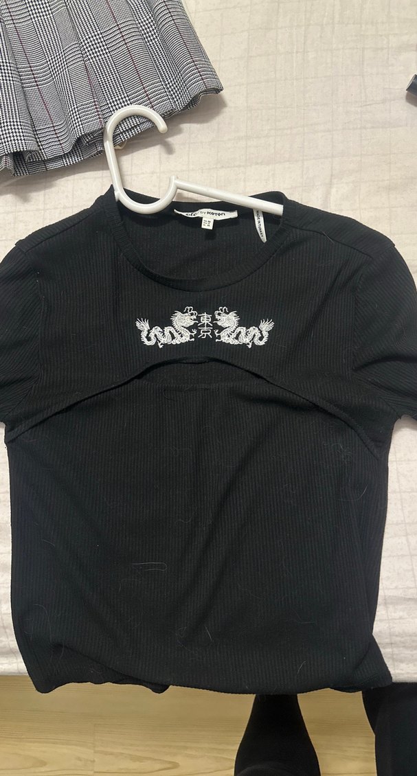 Kısa kollu, bisiklet yaka ve vücuda oturan kesime sahip siyah hamile tişörtü. Gotik desenli ve tokalı detaylarla günlük kullanıma uygun sentetik kumaştan yapılmıştır.
