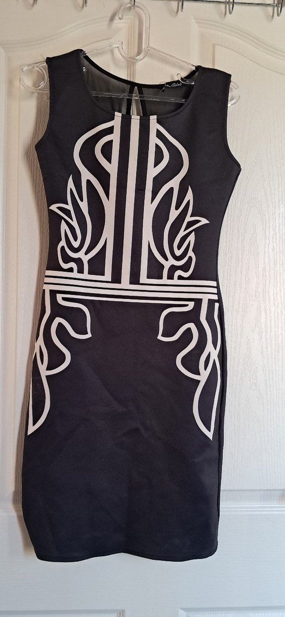 Desenli lacivert kısa Kalem Elbise