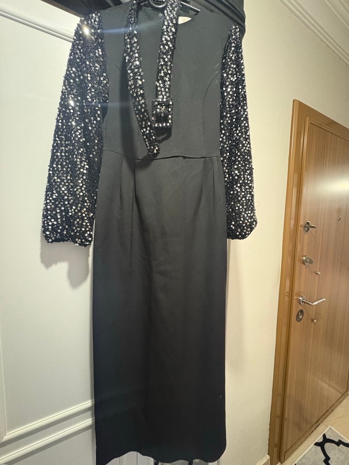 Desenli Siyah Uzun Kadın Elbise
