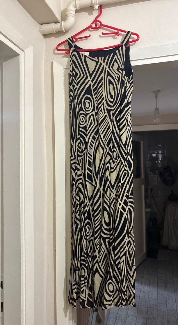 Desenli Siyah Uzun Kadın Elbise