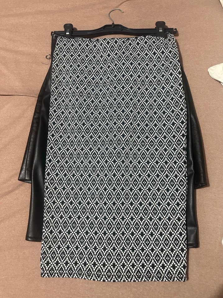 Siyah beyaz desenli, likralı 36 beden kalem etek. Sorunu yok, kullanılmamıştır.