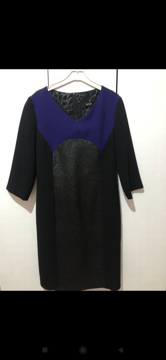 Uzun kollu siyah elbise, V yaka ve yılan desenli detaylarla avant-garde tarzını ofis şıklığıyla buluşturuyor. tunik olarakta kullanılır
