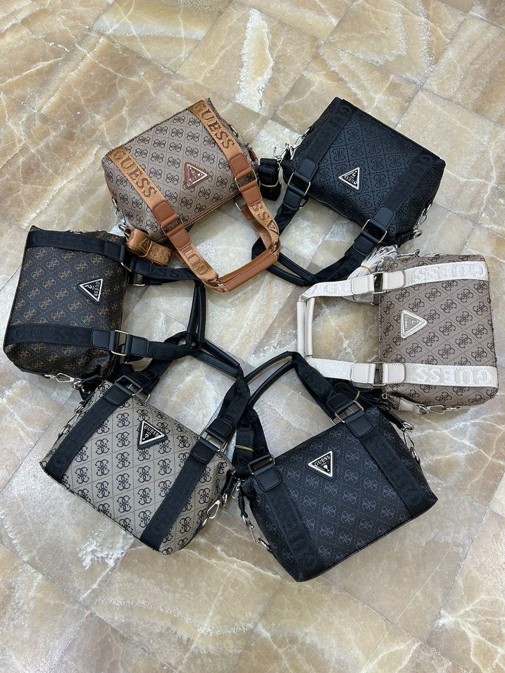 Sokak stilinde, tokalı bantlı, desenli gri ve kahverengi kadın çantaları. Günlük kullanım için uygun, Paris etkisiyle.