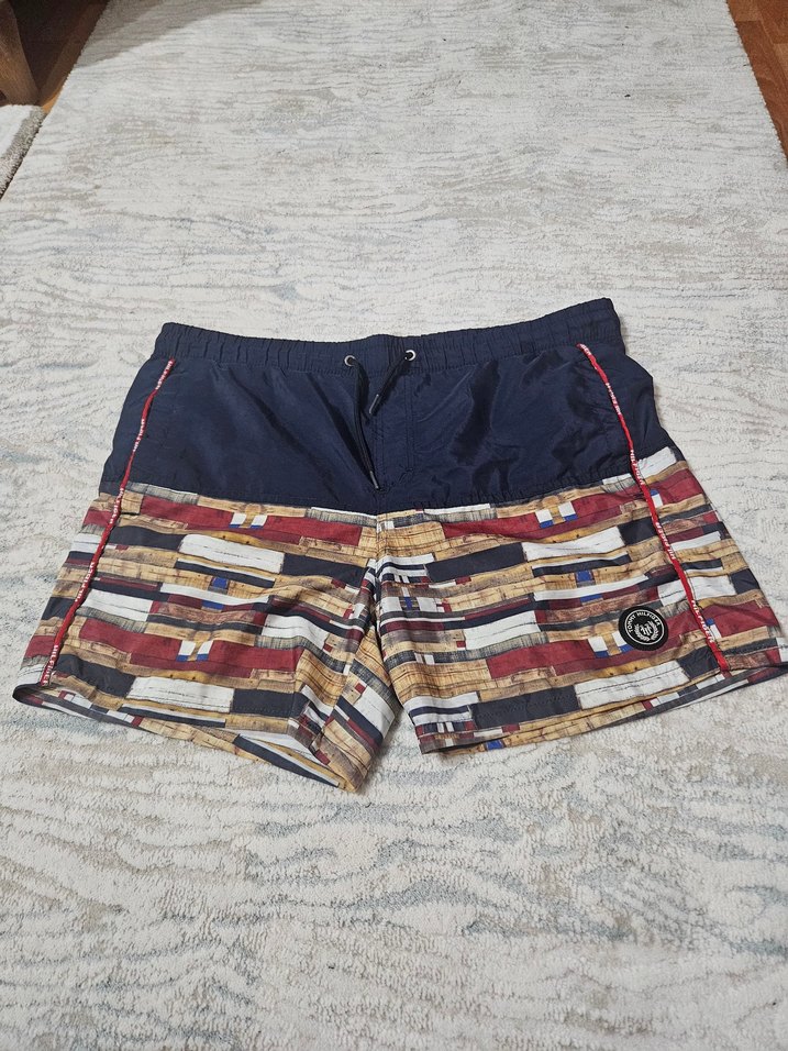 Gevşek kesim, renkli desenli mini şort, plaj ve gündelik sokak stili için uygundur. Tommy Hilfiger L 50cm bel 40cm boy