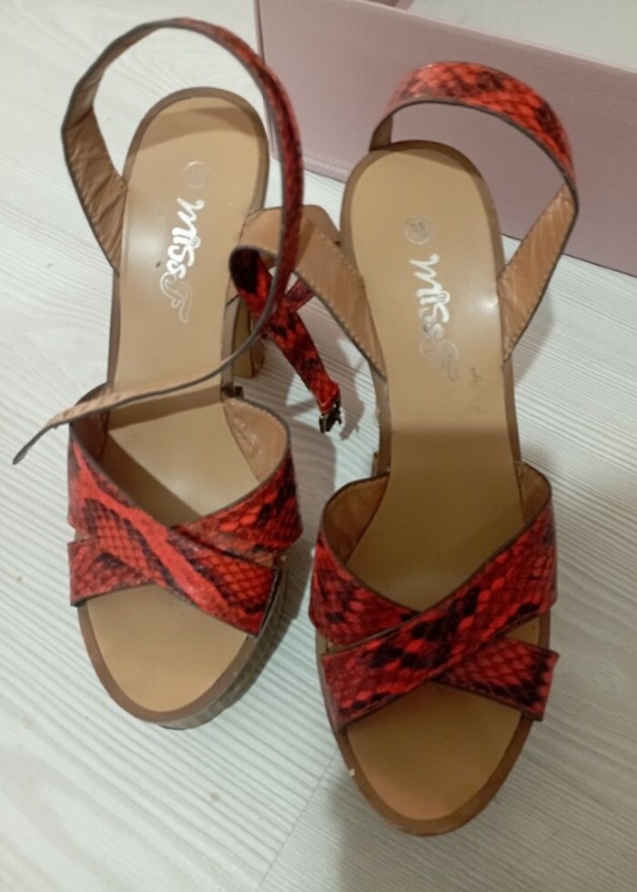 Ürün yılan deri detaylı turuncu siyah renklidir topuğunun plastik kısmı çıkmıştır küçük tadilata ihtiyacı vardır kullanımı oldukça rahattır