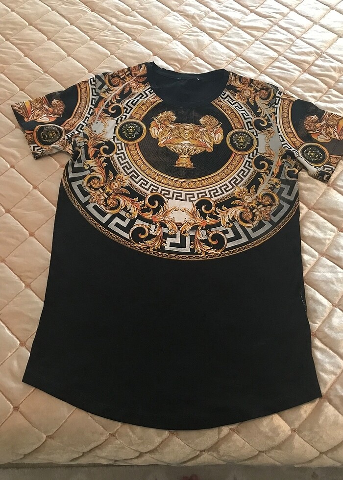 Etiketi kesilmiş hediye geldi bir defa denendi ve yıkandı, tertemiz.Asla giyilmedi!!! Sıfır tişört. Arkası siyah renk, yapışkan taşlarda hiç bir dökülme yok.