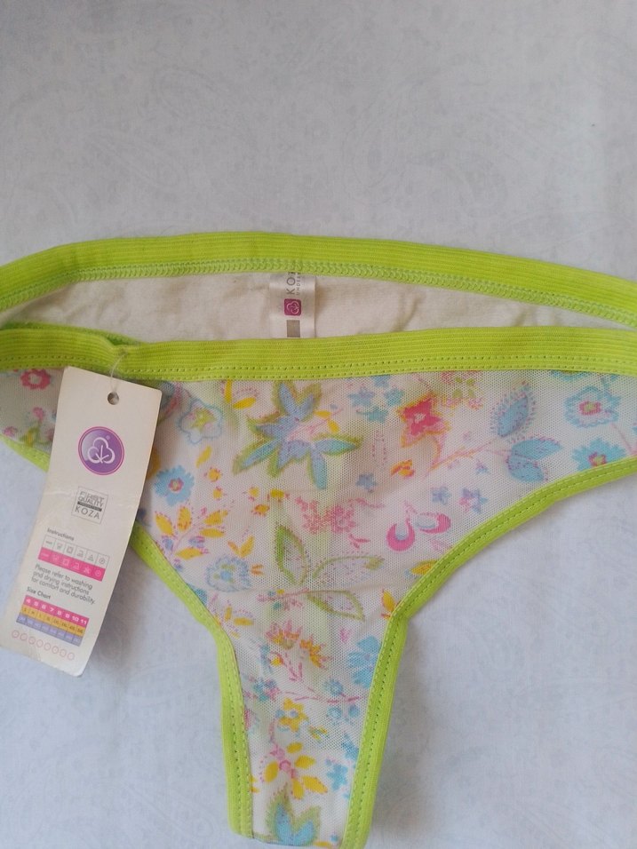 Yeşil kenarlıklı, pastel çiçek desenli tül kadın string külot.iç çamaşırı iadesi yoktur