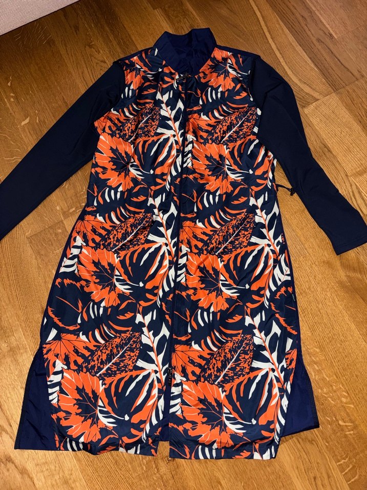 Bu haşama yüksek yakalı ve uzun kolludur. Canlı desenli ön kısmı koyu renklerde olup, fermuarlı ve sentetik kumaştandır.