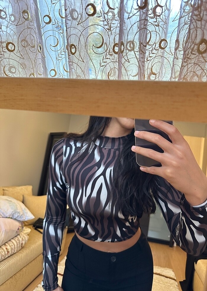 Desenli uzun kol crop