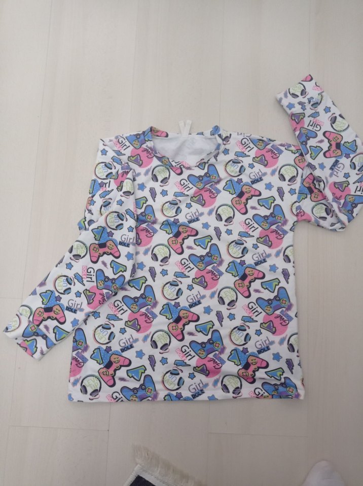 Sentetik kumaştan, bol kesim, crew neck, uzun kollu kız sweatshirt. Pastel çok renkli desenli ve düğme detaylı. Trendy casual sokak stili için uygun.
