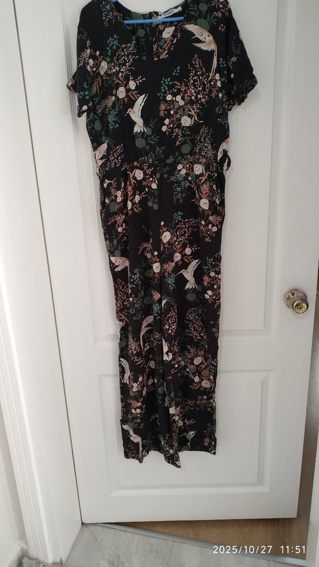 Bol kesim, desenli ve koyu renkli uzun Drapeli tasarım, V yaka kollara sahip bohem tarzda, günlük kullanım için uygun.