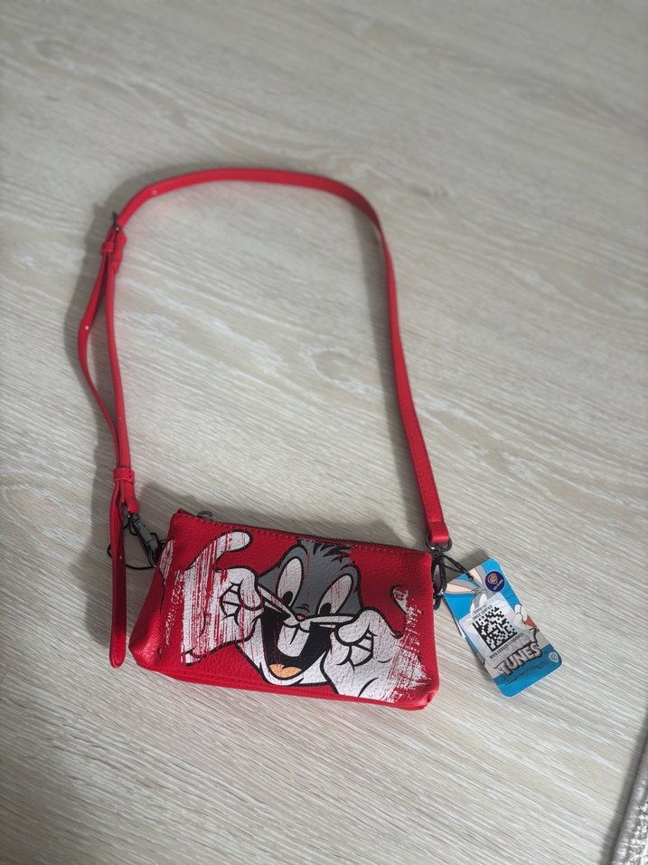 Kırmızı Desigual eğlenceli çanta. Fermuar başlığı eksik ve arkasında nokta kadar bi defosu var kullanıma engel değildir