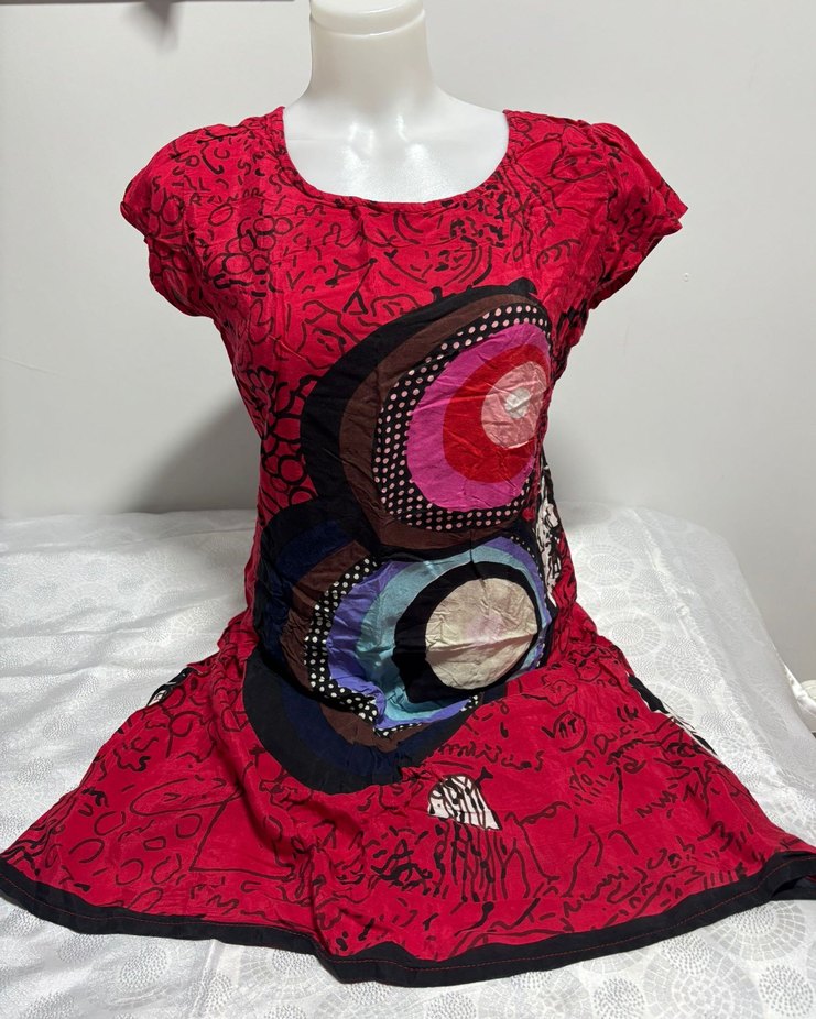 Kısa kollu, bisiklet yaka , renkli batik desenli, vücuda oturan uzun elbisedir.