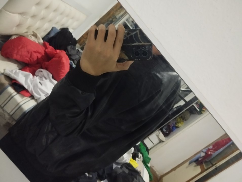 dessa orjinal siyah deri ceket denemek icin giyildi etiketi yok