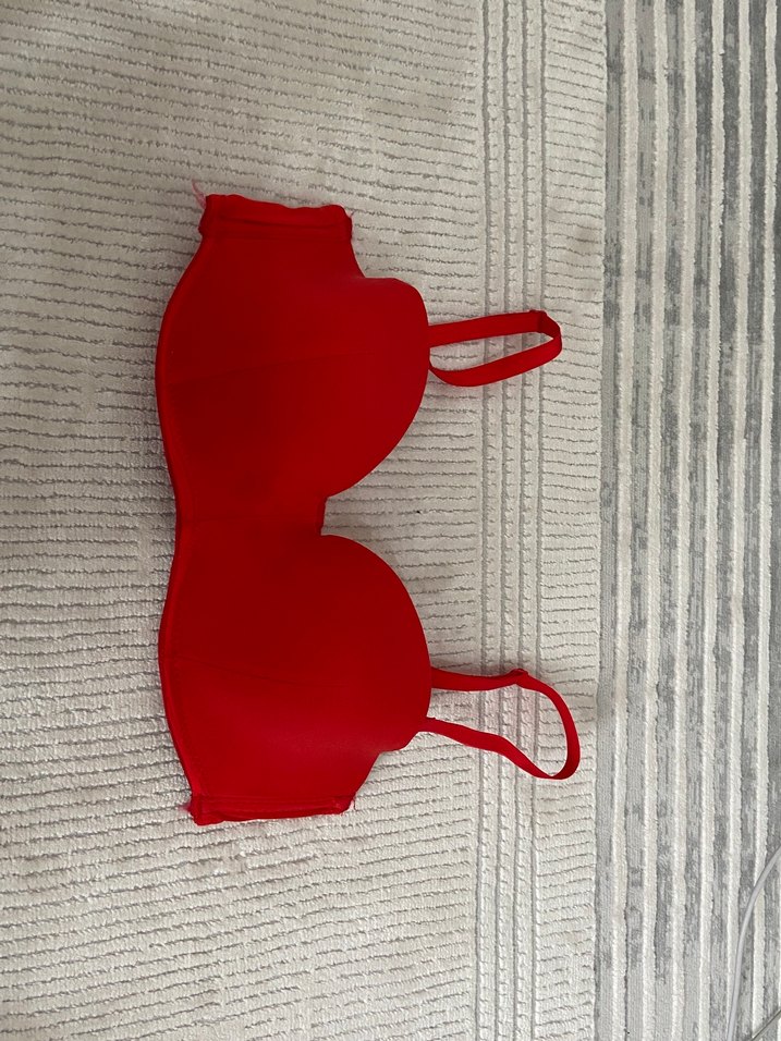 Kırmızı renkte, desen içermeyen, rahat ve normal uzunlukta askılara sahip sütyen. ❤️