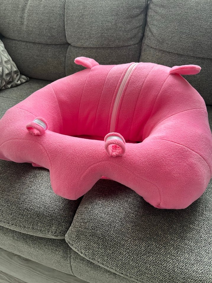 Yumuşak ve renkli pembe, desensiz. Bebeğim sadece 2 kere oturdu beğenmediği için satıyorum