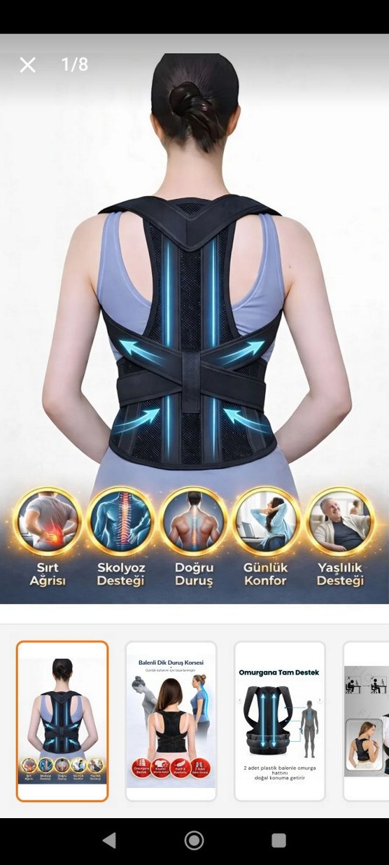 skolyoz desteği ve doğru duruş sağlayan, günlük konfor sunan destekleyici korsedir. Sırt ağrısı ve yaşlılık etkilerini azaltır. Kamburluğa karşı etkilidir. 0 ürün