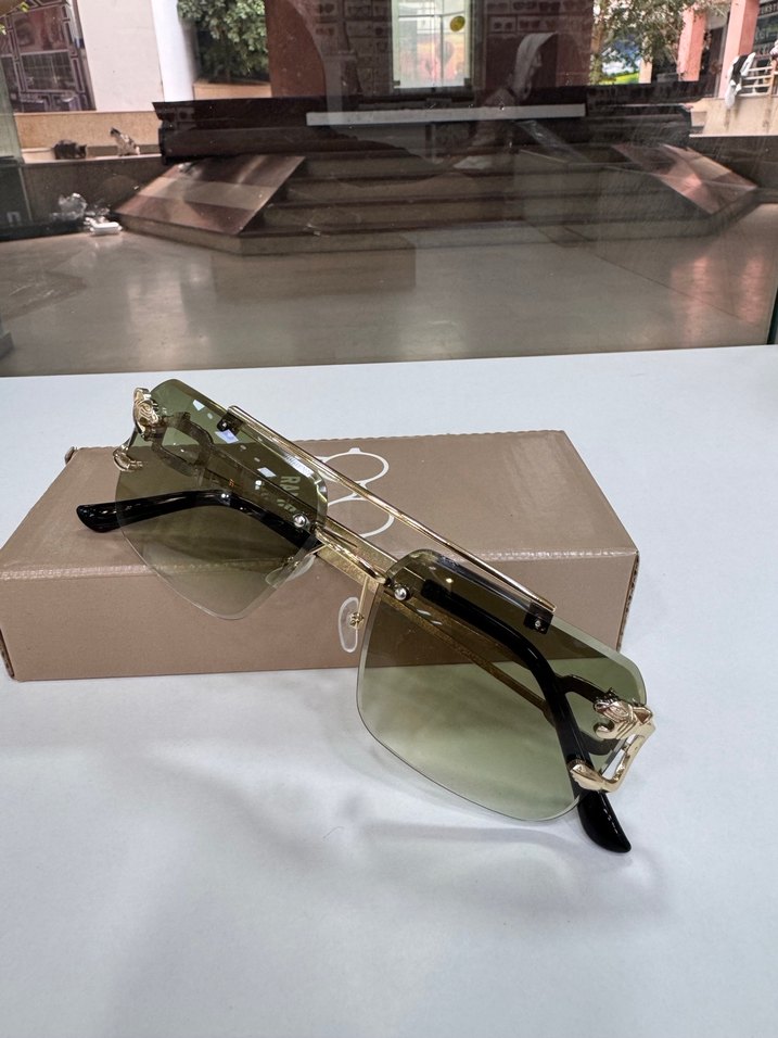Altın renkli, şeffaf detaylı ve parlak tasarıma sahip kadın güneş gözlüğü. Çağdaş ve klasik zarafeti yansıtıyor.