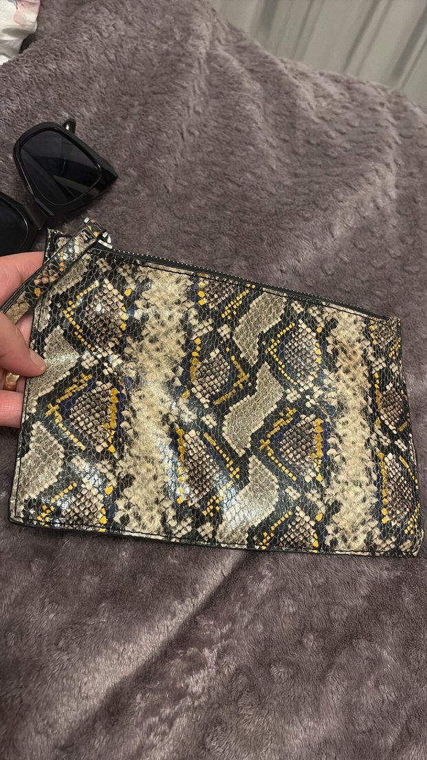 Detaylı Yılan Derisi Desenli Deri Clutch