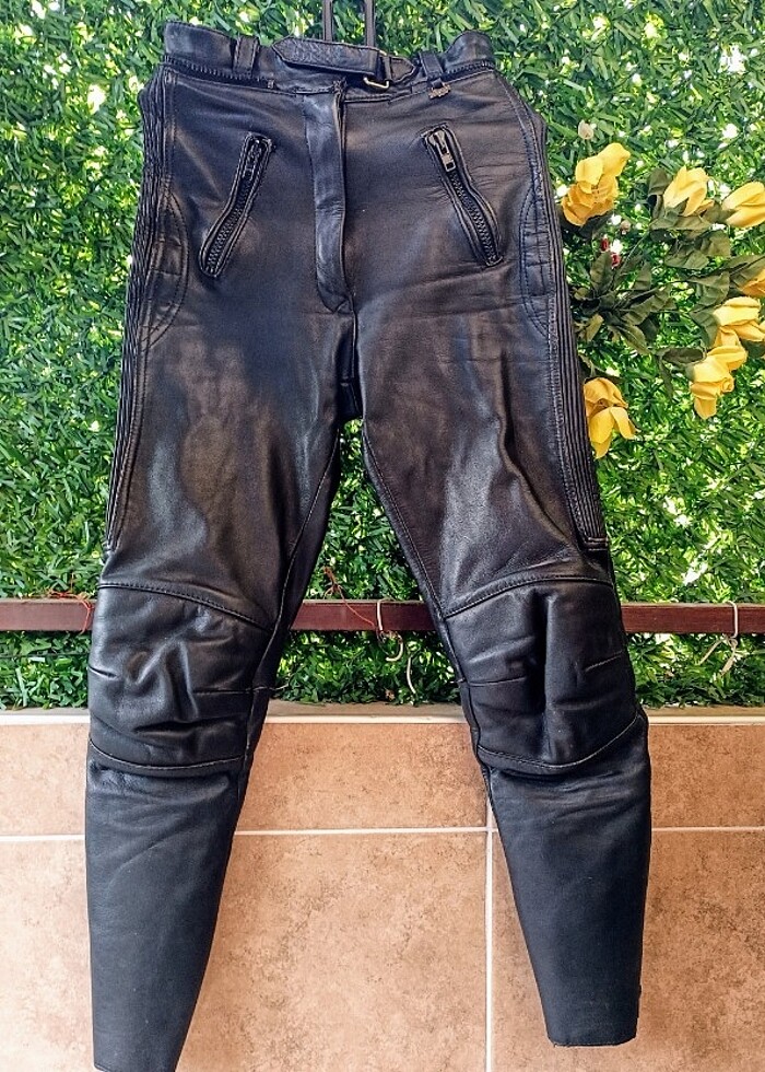 ORJİNAL DERİ-38 BEDEN- KALIN VE ASTARLIDIR.SIVI VE SOĞUK GECİRMEZ.ÜST BELDE MONT İCİN FERMUAR YERİ VARDIR.İKİ ADET FERMUARLI CEP-DİZ KORUMALI-İKİ ADET PACADA FERMUAR -CIRTLI KEMER VE FERMUARLIDIR. MOTORDA HAREKET ÖZGÜRLÜĞÜ SAĞLAR.KULLANIMDAN KAYNAKLI YAN TARAFINDA MİNİK DERİ DEFORMESİ MEVCUT.SON GORSELDE BELİRTİLDİ.ÖLÇÜLERİ GÖRSELLERDE VAR.LÜTFEN KONTROL EDİNİZ!!! #detlevlouis #motorpantolon #erkekgiyim #motorgiyim #deripantolon