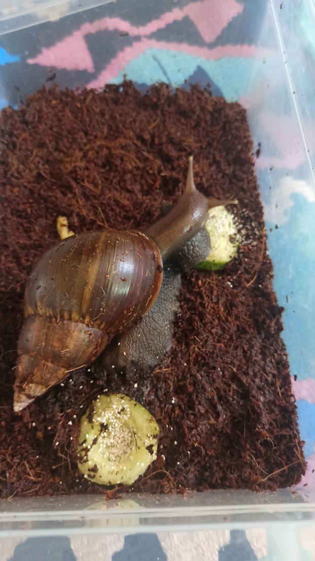 dev afrika salyangozu kendi üretiğim yavrular, taze yeşilik ve zebzelerle beslendiler kalsiyumları eksik edilmemiştir, sağlıkları gayet yerinde başka canlılarla takas olur