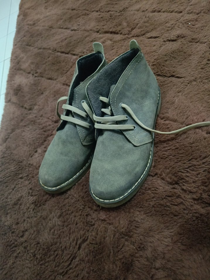 Bağcıklı ve tokalı, desen içermeyen minimalist süet botu, normcore tarzda sade bir görünüme sahip. hiç giyinmedi sıfırdır resimdekilerden daha canlıdır