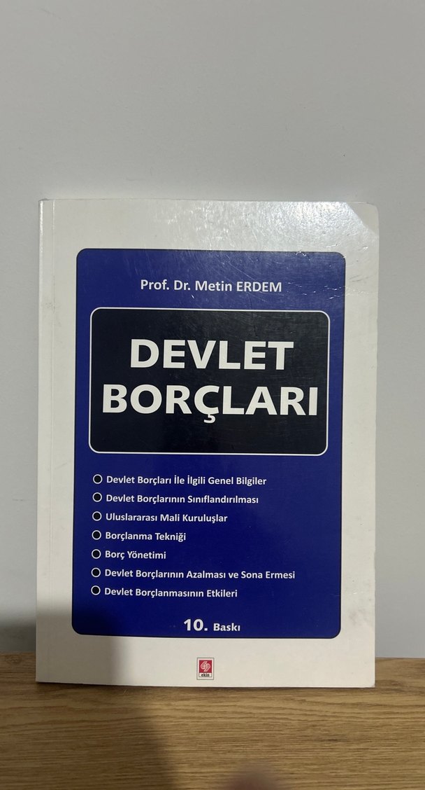 Ufak notlar alınmış hafif yıpranmış Devlet borçlarıyla ilgili genel bilgiler, sınıflandırma, uluslararası mali kuruluşlar, borçlanma teknikleri, borç yönetimi ve borçların azalması ile sona ermesi konularını içerir.