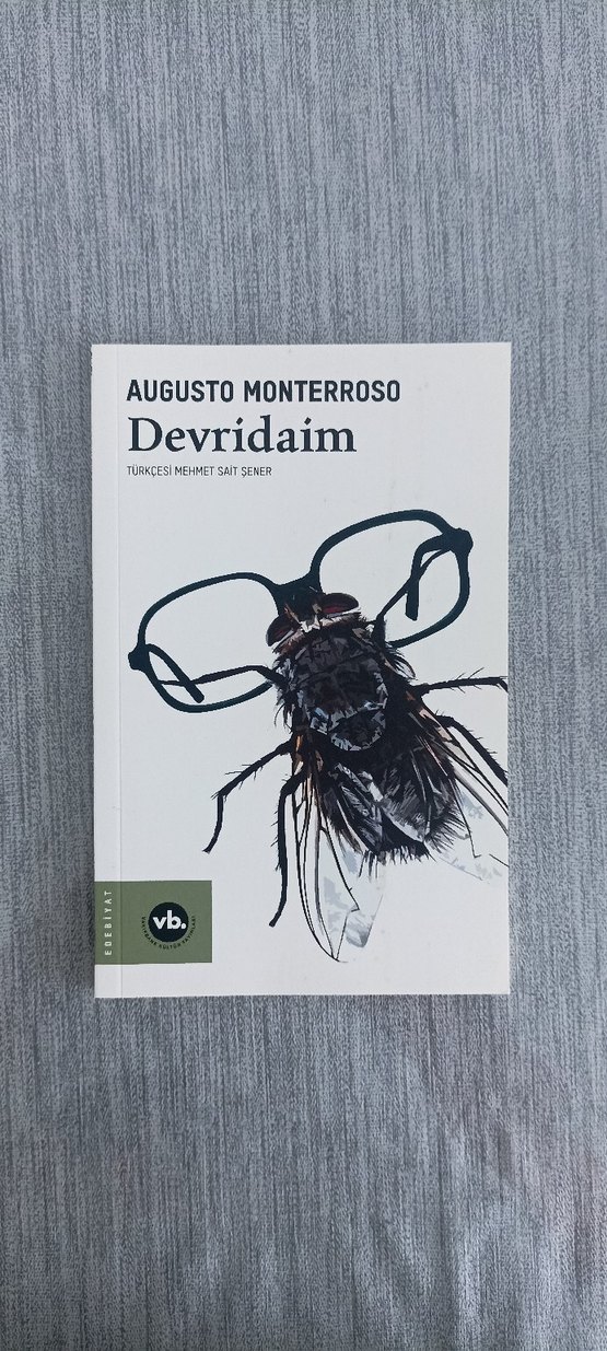 kitap sıfırdır 2.el değildir kitabın uzun yıllardır baskısı yoktur sıfır olarak sadece bende bulabilirsiniz Augusto Monterroso'nun Devridaim adlı romanı, Mehmet Sait Şener tarafından Türkçeye çevrilmiştir. Kapakta gözlüklü bir sinek resmi bulunuyor.