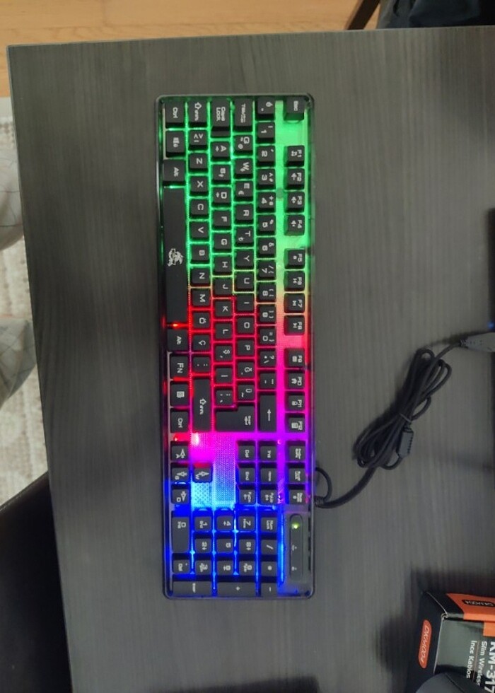 ÜRÜN KUTUSU SADECE KONTROL AMAÇLI AÇILMIŞTIR, SIFIRDIR. Dexim KBL707 Mekanik Hisli Rgb LED Arka Işıklı Şeffaf Gaming Oyuncu Klavye Dexim KBL707 Mekanik Hisli RGB Led Arka Işıklı Şeffaf Gaming Oyuncu Klavye - DKA010