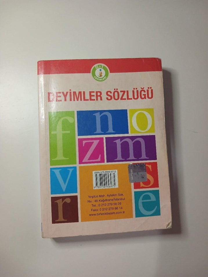 Renkli bloklar ve kırmızı başlık ile deyimlerin yer aldığı sözlük kitabı.