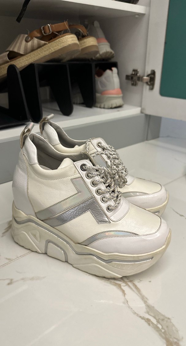 Sadece düğünümde giydim 38-39 numara ayağım aşırı rahattı her türlü rahat oynadım topuğu da gayet rahat DGN marka dolgu topuklu ve bağcıklı tasarıma sahip kadın spor ayakkabısıdır. Kauçuk malzemeden üretilmiş olup, günlük kullanım için uygundur. Trendy casual ve athleisure stiline uygundur.