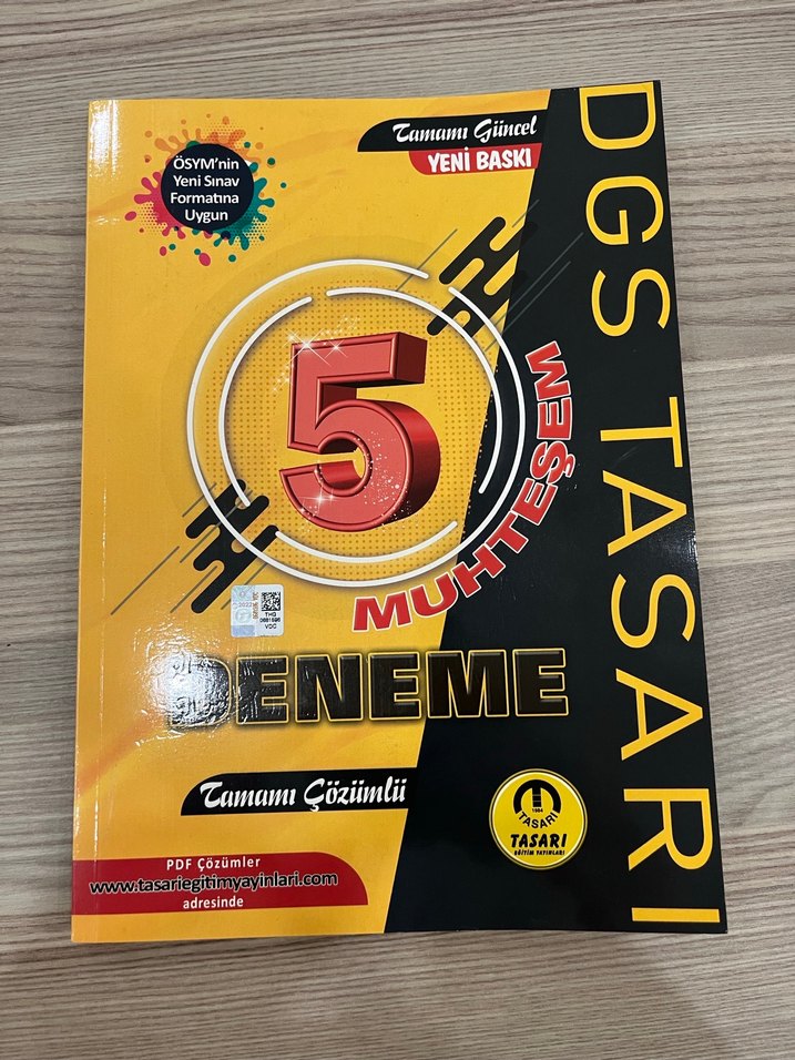 ÖSYM'nin yeni sınav formatına uygun, tam çözümlü 5 deneme sınavı içeren DGS hazırlık kitabı. 2 deneme çözülü
