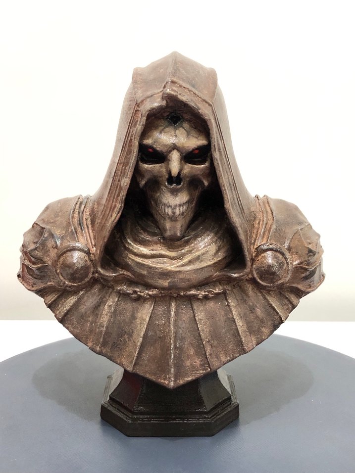 “Cehennem Kapıları Açılıyor!” ⚔️ Bir Diablo hayranı olarak, efsanevi Diablo II kapak görselinden ilham alarak bu karanlık Büyücü Büstünü yarattım. Tamamen 3D baskı sonrası saatlerce süren yoğun el emeğiyle boyandı ve detaylandırıldı. Özellikle o efsanevi, kırmızı parlayan gözler ve eskitilmiş zırh/kemik dokusu için çok uğraştım! Üzerindeki özel vernik kaplama ile bu parça, nostaljik koleksiyonunuzun en değerli eseri olacak. ✨