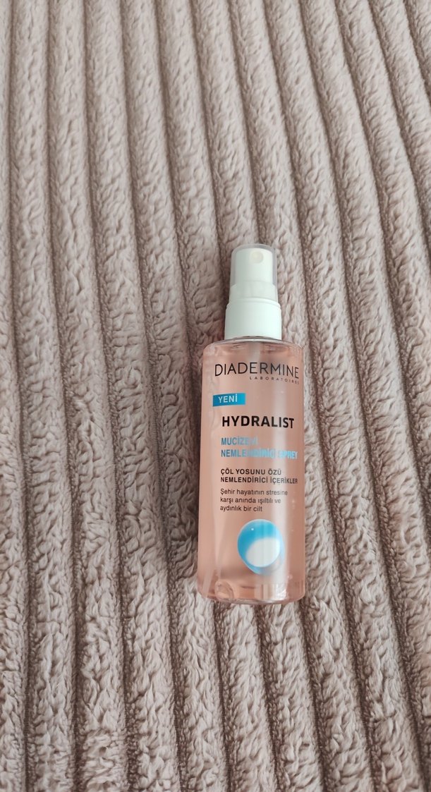 Diadermine Hydralist yüz spreyi, çöl yosunu özü içeren nemlendirici formülüyle şehir hayatının stresine karşı korur ve cildi aydınlık tutar.