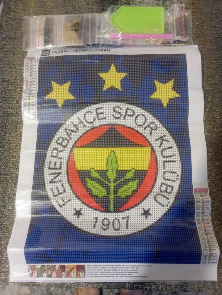 30*40 ebatlarında takım amblemi 5d elmas boyama seti.kalemi,tabağı, renkli taslari ve yapışkan mum içerisindedir