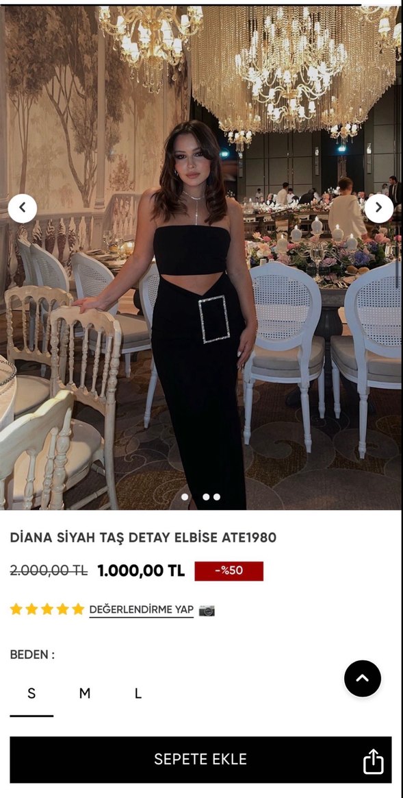 Diana siyah, straplez, taş detaylı, midi elbise Vücuda oturan kesim ve yırtmaçlı, taş kısmında kuru temizlemeden kaynaklı kücük bir pas gibi bir şey var. İlk çıktığı fiyattan almıstım 2000 tl fazlalıktan satıyorum