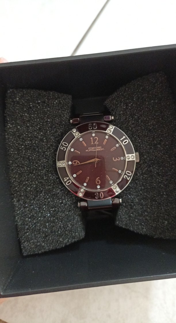 Bu kadın kol saati koyu bordo kadran ve tokalı kayışa sahiptir. Klasik ve gotik tarzı ile zamansız bir şıklık sunar. ⌚ hiç kullanılmamıştir. sorunsuz sıfır