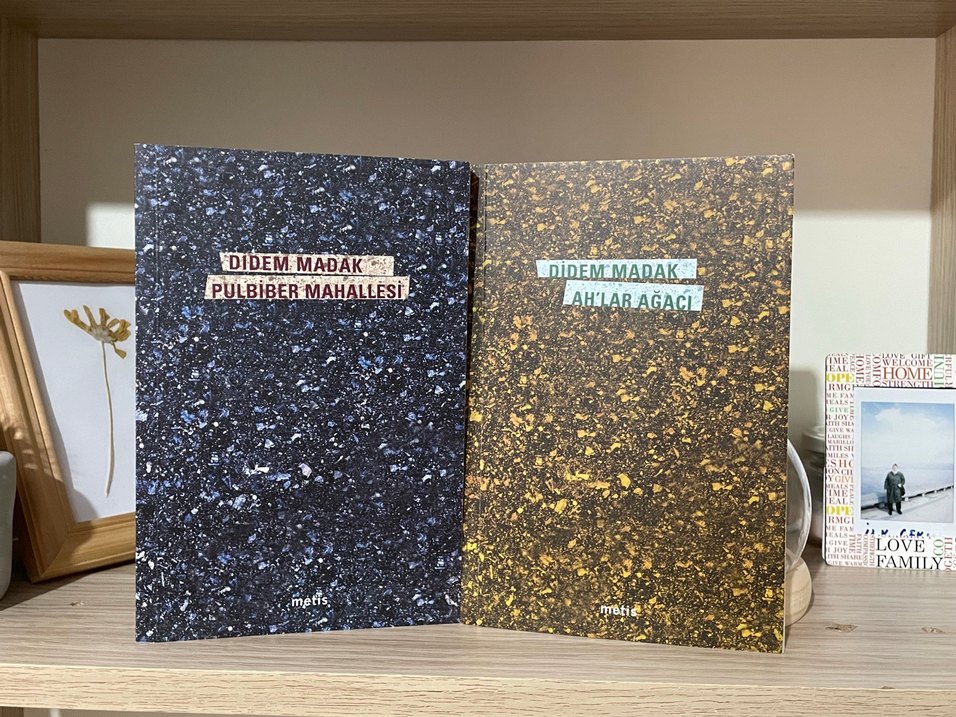 Didem Madak'ın 'Pulbiber Mahallesi' ve 'Ahlar Ağacı' adlı şiir kitapları, dokulu kapaklara sahip.