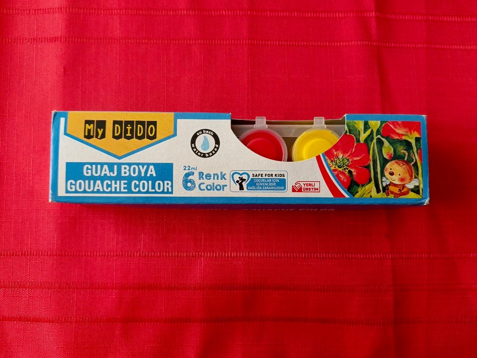 Dido parmak boyası seti, 22 ml kaplarda 6 canlı renkten oluşur. Çocuklar için güvenlidir ve yerli üretimdir. Yaratıcı oyun için uygundur. sadece 3 rengi yarıya kadar kullanılmıştır.