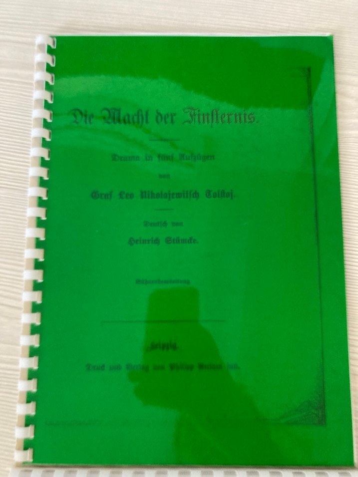 Die Macht der Finsternis, Kont Leo Tolstoy tarafından yazılan ve Heinrich Gräfke tarafından çevrilen bir şiir kitabıdır. Plastik tarak ciltli ve yeşil kapaklıdır.