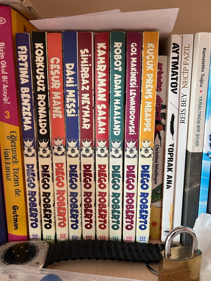 Diego Roberto'nun Messi, Neymar, Ronaldo, Mbappe gibi futbolcuları konu alan çocuk kitapları seti. Kitapların tanesi 100 tl toplu alımda indirim yaparım