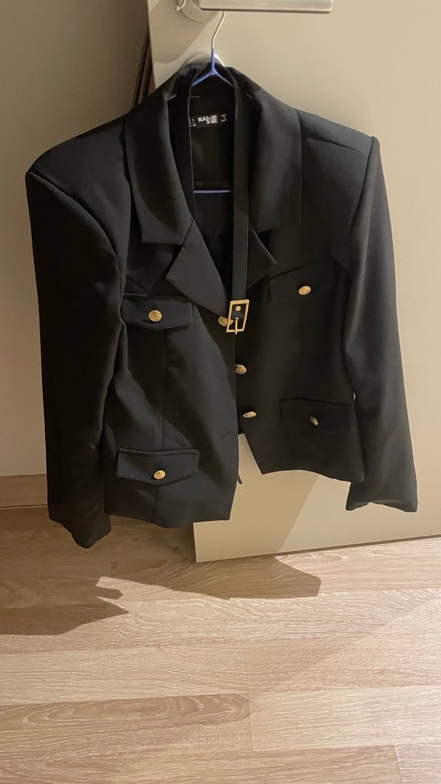 Diemmod kısa takım Kadın Siyah Deri Midi Blazer