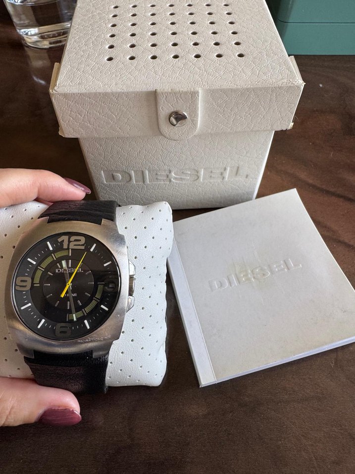 Diesel marka, güçlü metal kasa ve siyah deri kayışlı erkek saati. Sokak ve biker tarzına uygun. Orijinal kutu ve kullanım kılavuzu ile birlikte. ⌚ modeli DZ 1109