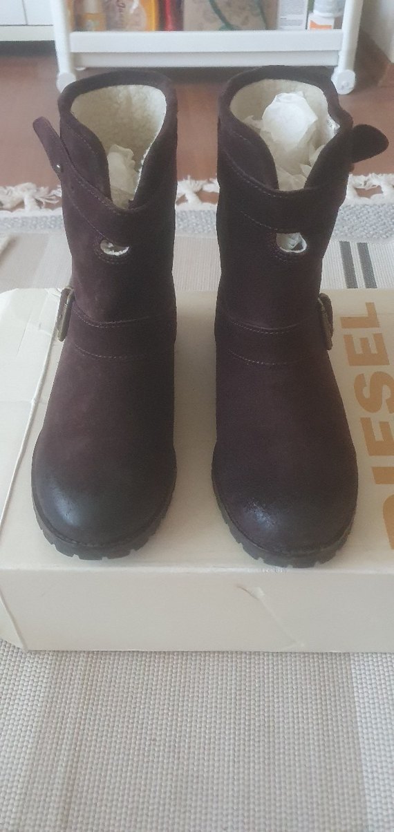 diesel 37 numara biker bot. mürdüm kahverengi rengi içi fake fur tokalı biker model bot. 1 2 defa giyildi. tüm detayları görsellerde göründüğü gibi yeni gibidir.