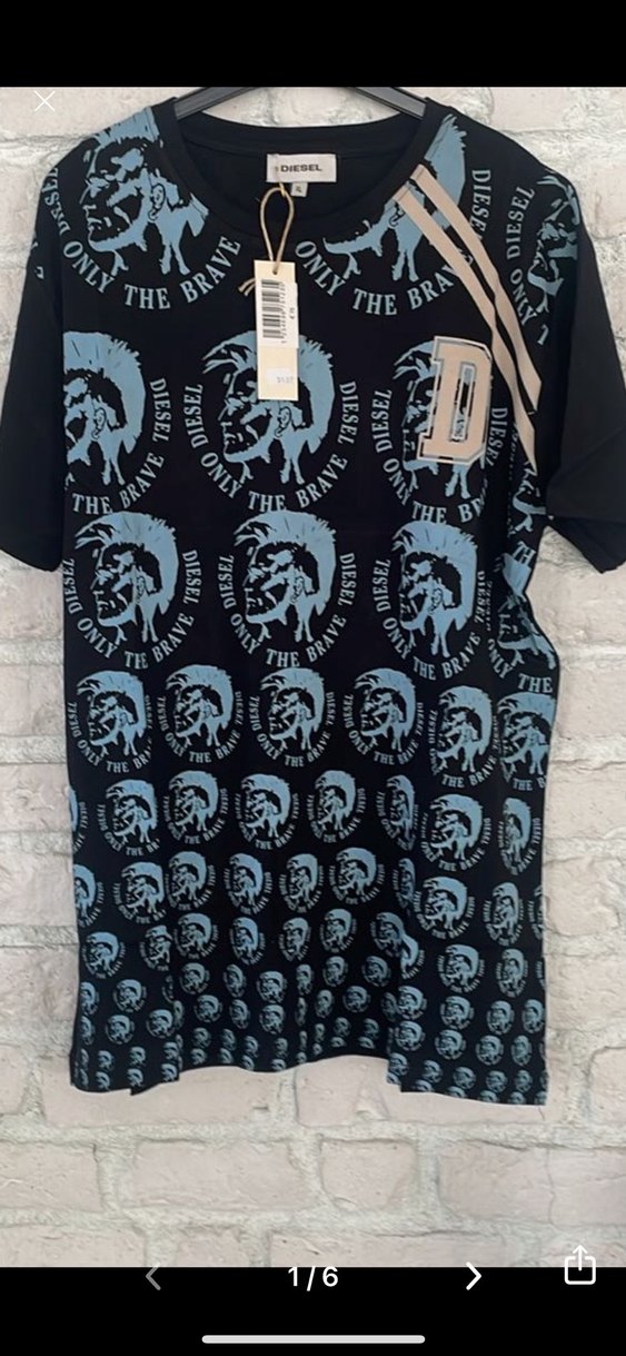 Diesel markalı, siyah renkli, baskılı kafatası desenli, kısa kollu, salaş kesim tişört. Günlük kullanım için uygun, sokak tarzı görünüme sahip.