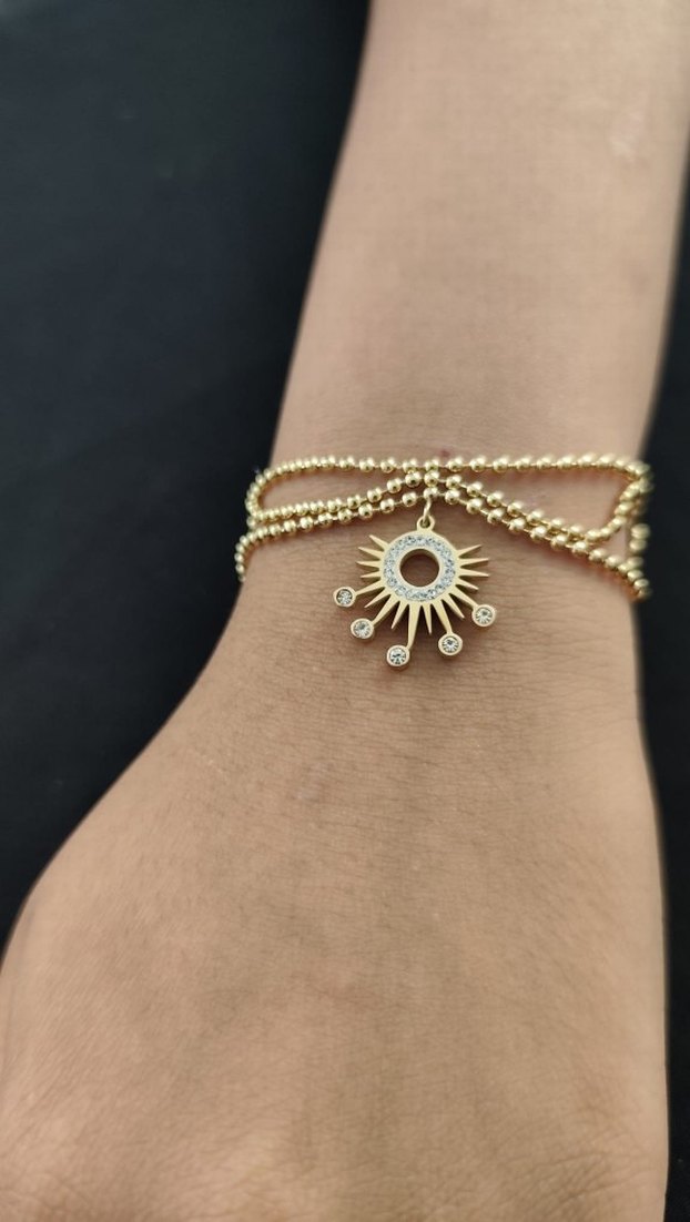 Parlak güneş figürlü küçük detaylara sahip altın renk zincirli kolye, bohem tarz için uygundur. ☀️