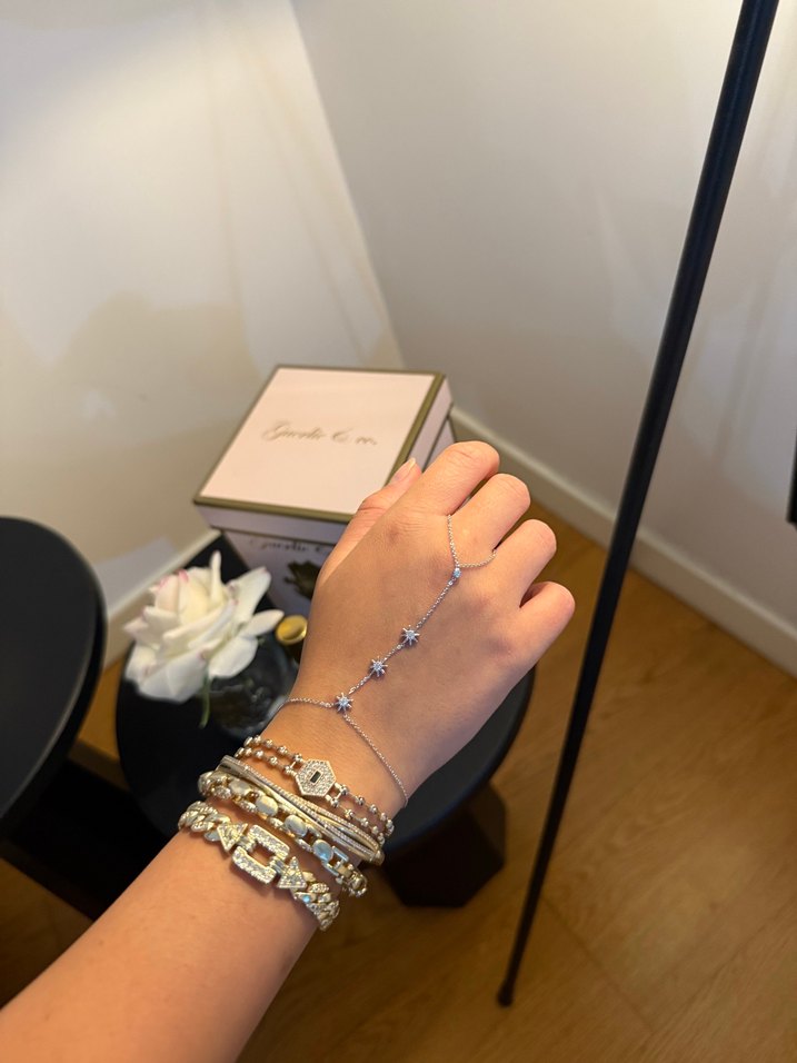 Diger markalı, altın renkli, zincir detaylı ve yıldız desenli kadın el zinciri, günlük sokak tarzına uygun. ✨